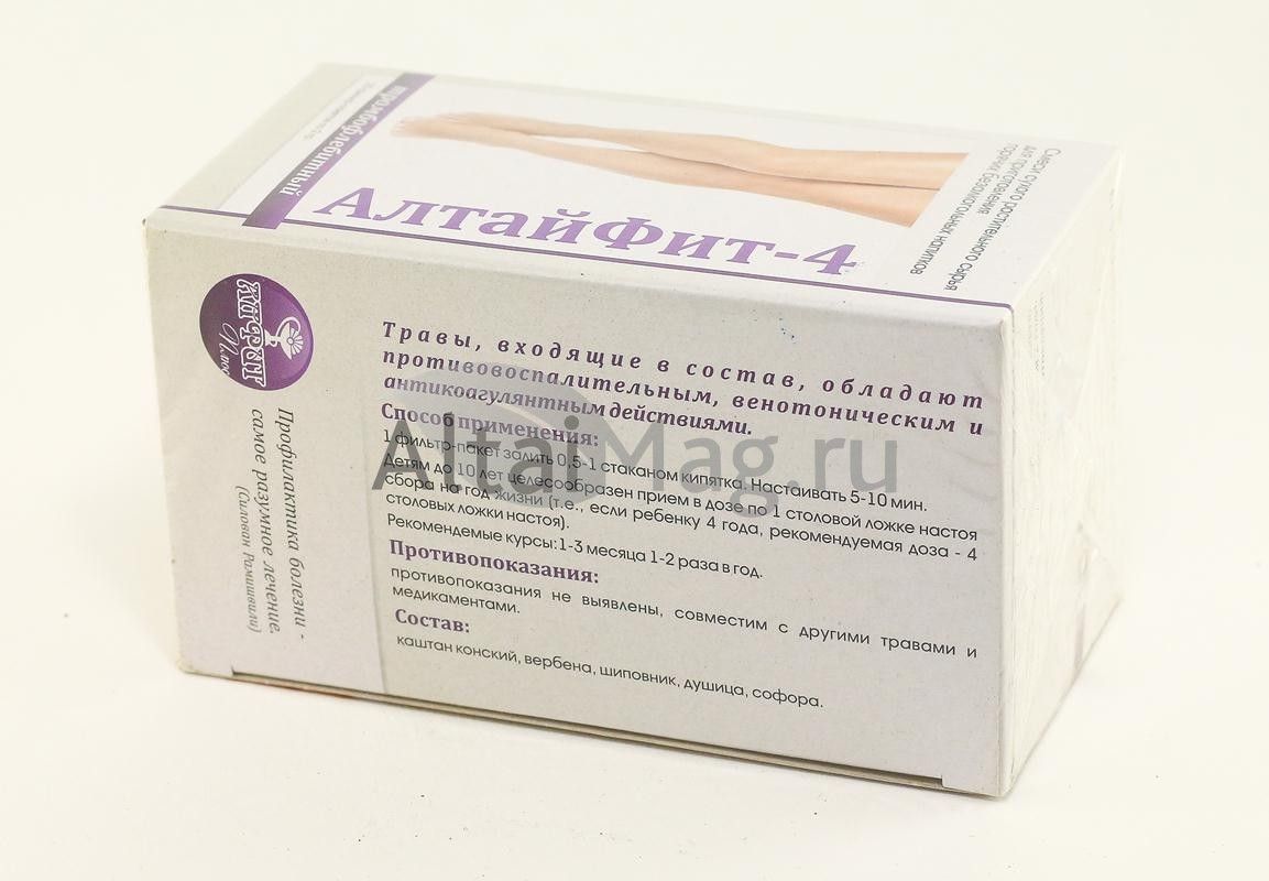 - Купите Алтайфит-4 тромбофлебитный чайный напиток 20 пакетиков в Калининграде по доступной цене 250 ₽ с доставкой на дом или заберите Ваш заказ в Калининграде из ближайшего пункта выдачи, сделав заказ на AltaiMag.ru.