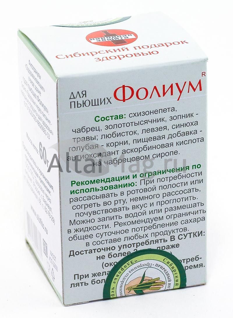 • Купите Фолиум 60 г в Калининграде по доступной цене 279 ₽ с доставкой на дом или заберите Ваш заказ в Калининграде из ближайшего пункта выдачи, сделав заказ на AltaiMag.ru.